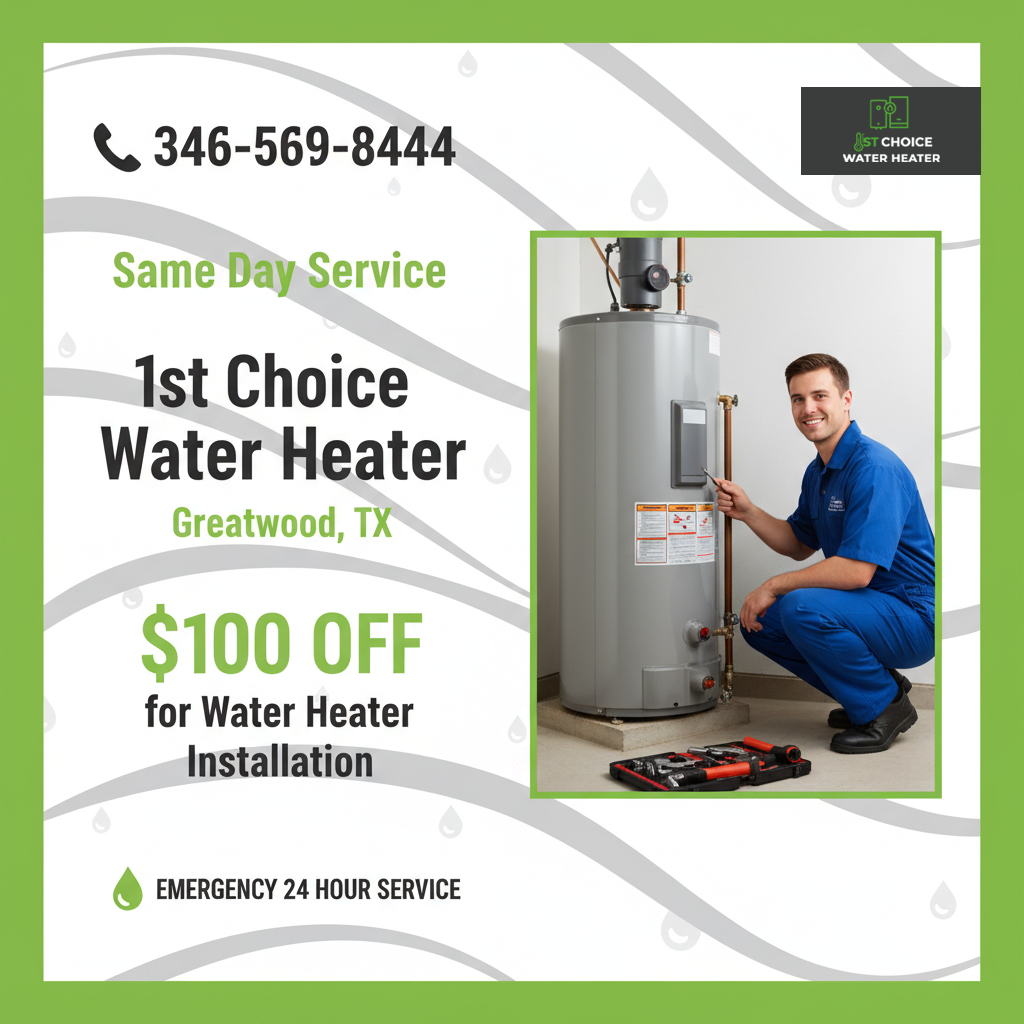 1st Choice Water Heater Greatwood TX offers flexible weekend appointments and urgent service confirming your downtime is always comfortable.